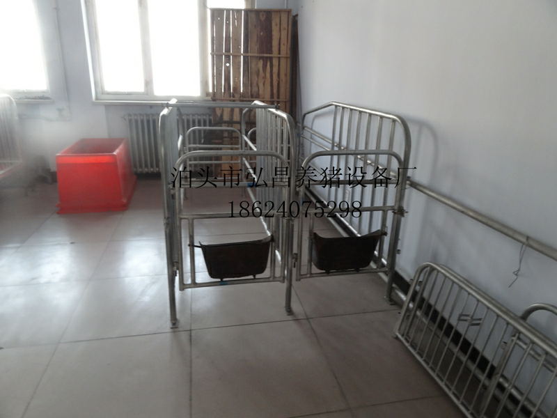 高培定位欄的尺寸與母豬定位欄一樣,只是可以隨便移動,不同的是在定位欄中間添加了一個拱形升降架,把小母豬趕進定位欄之后,將升降架套在小母豬背前方固定,在母豬酮部下方插一根木方防止后退。然后把大公豬趕來配種 是。無論多大的公豬都不會壓壞母豬。一個人操作,很方便,用這個方法還解決了母豬腳痛,母豬走動母豬倒爬公豬的問題。